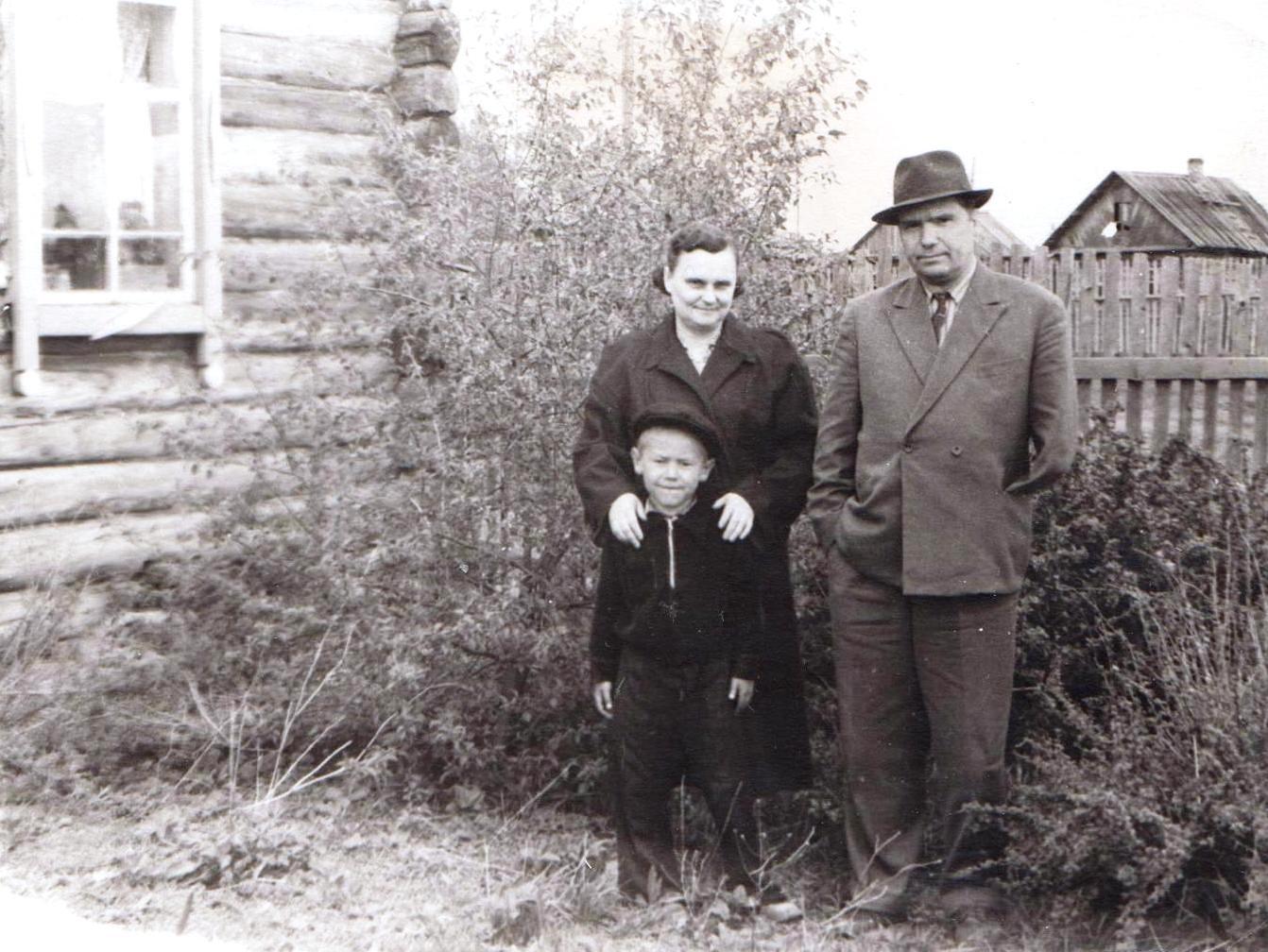 Мизгирева Виктория Яковлевна и Мизгирев Иосиф Алексеевич с маленьким Сухачевым Александром Павловичем, г. Асино.