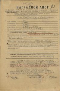 Сошлюсь ещё на один документ — наградной лист от 27 декабря 1945 года, подписанный томским горвоенкомом гвардии майором Гребенем: