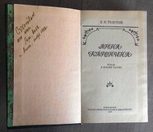 В очередной раз, перебирая книги в своей библиотеке, я наткнулся на «Анну Каренину», изданную в Новосибирске, тиражом 100000 экземпляров, по нынешним временам – фантастика! Открыл и увидел дарственную надпись: «Сухачёвым от нас. Гера, Валя. Асино, ноябрь 1982 года». Обычно дарственные надписи содержат приписки: – «На память» или «На долгую память». Хотя, сентиментальность всё же с возрастом проявляется, а мы в то время были совсем молодыми.